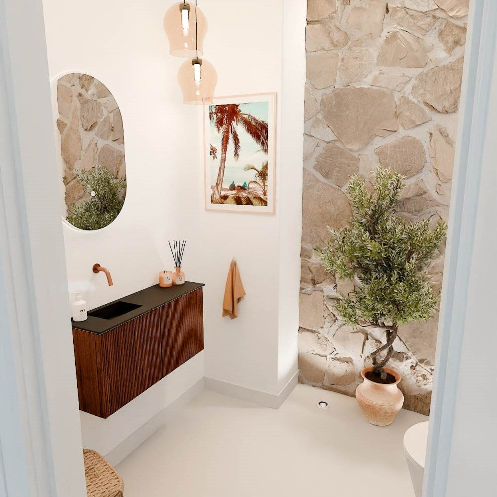 JOYA 80cm toiletmeubel kleur Ruby. Wastafel FAYE positie Links Zonder kraangat kleur Urban.
