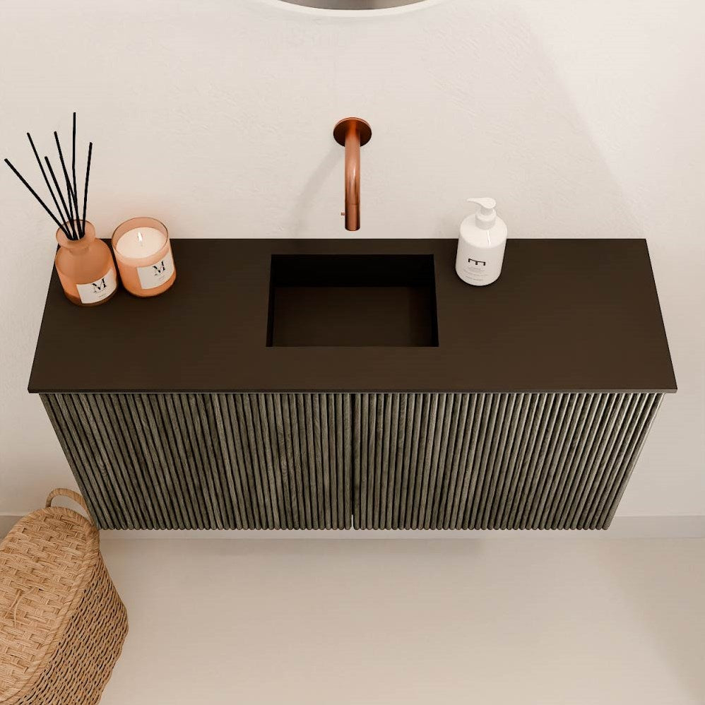 • Inclusief elegante Solid Surface wastafel in wit (Talc) of zwart (Urban).