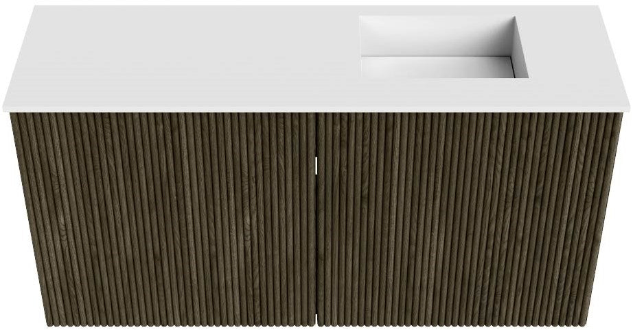 • Inclusief elegante Solid Surface wastafel in wit (Talc) of zwart (Urban).