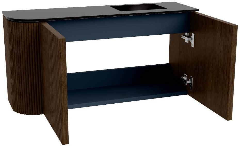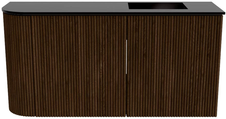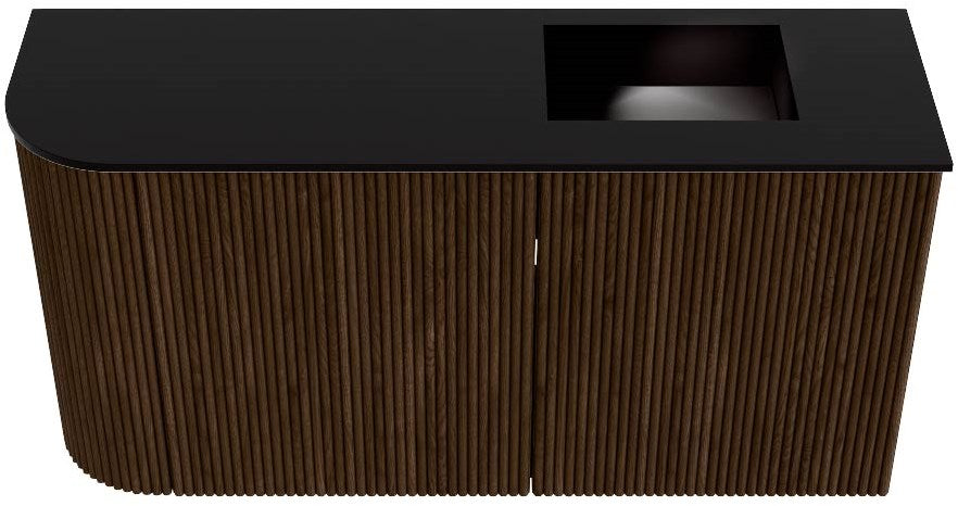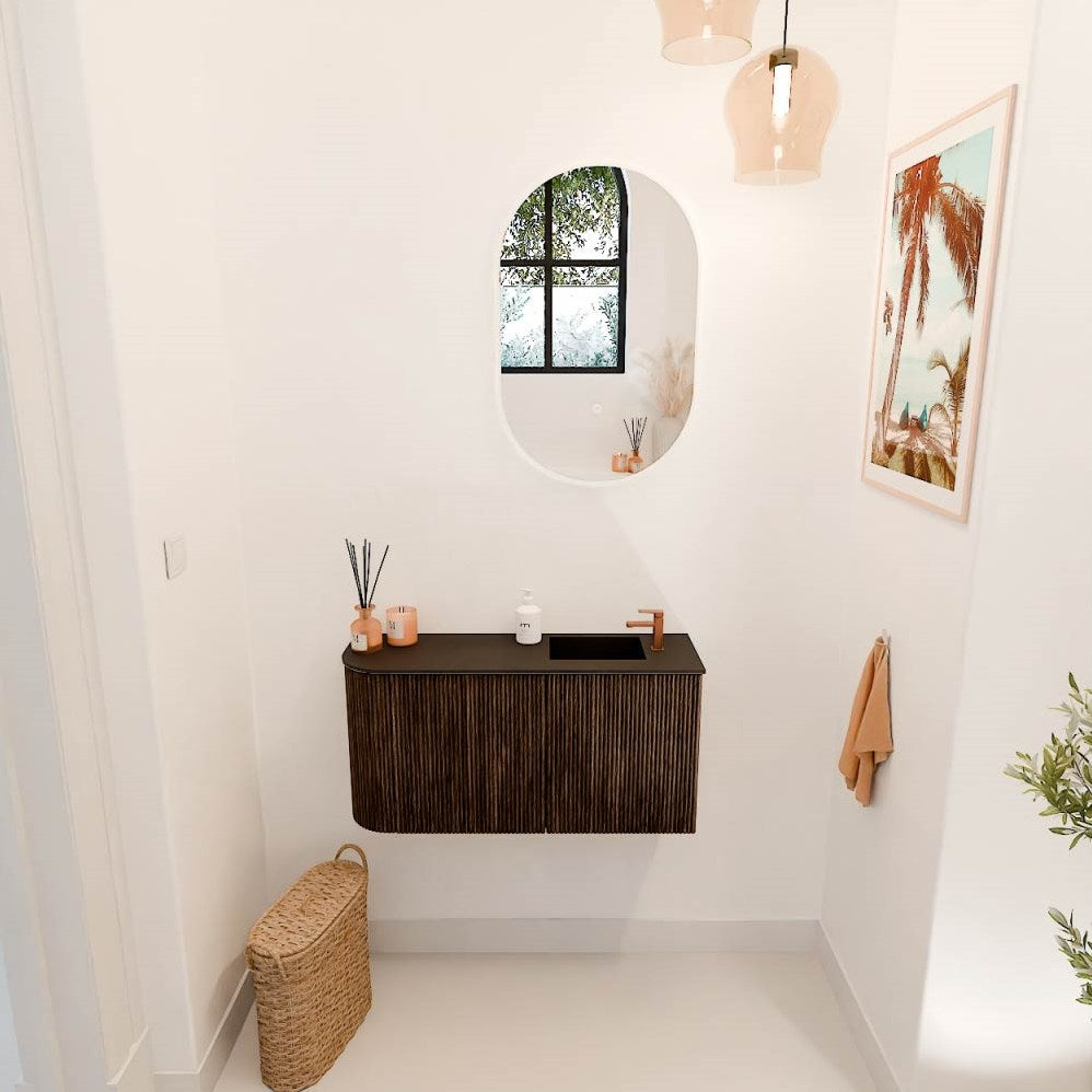 JOYA 81,6cm toiletmeubel ronding links kleur Walnut. Wastafel FAYE positie Rechts 1 kraangat kleur Urban.