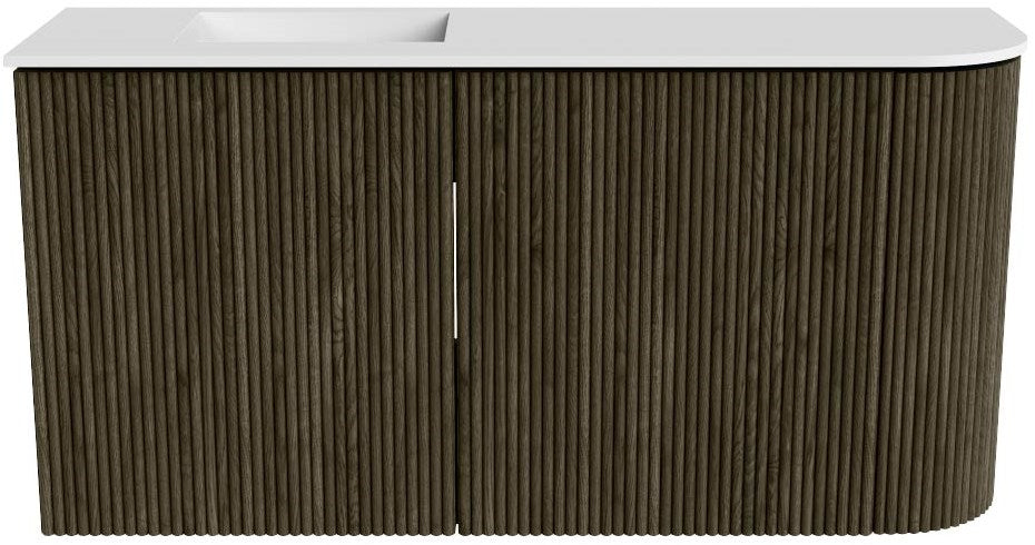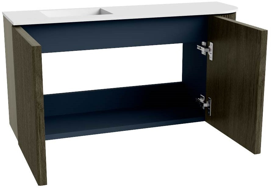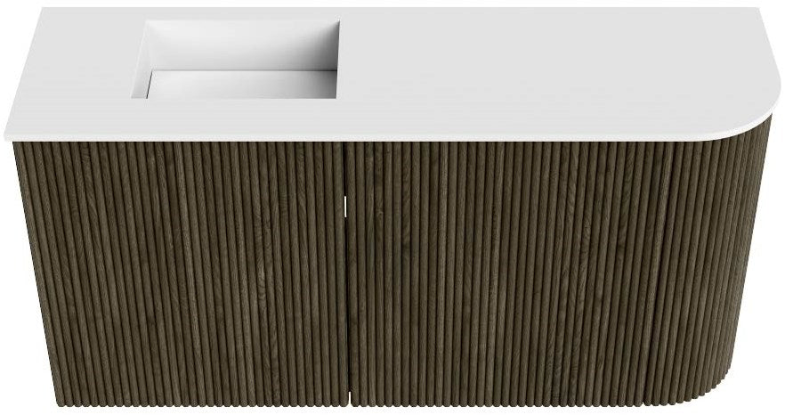 JOYA 81,6cm toiletmeubel ronding rechts kleur Shadow. Wastafel FAYE positie Links 1 kraangat kleur Talc.