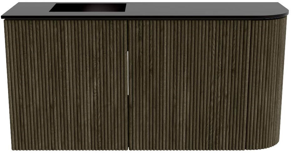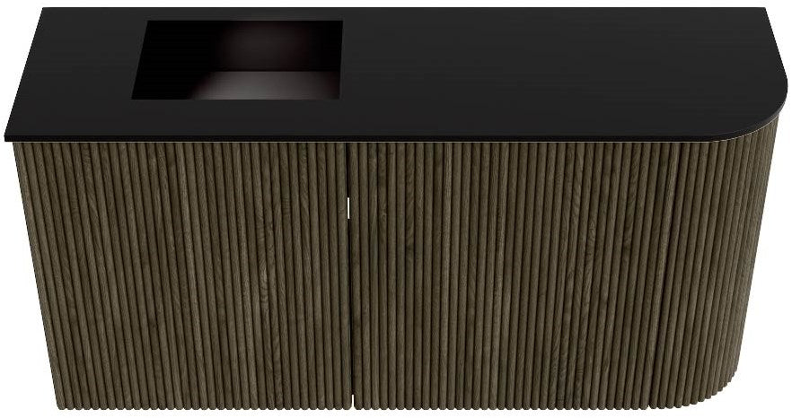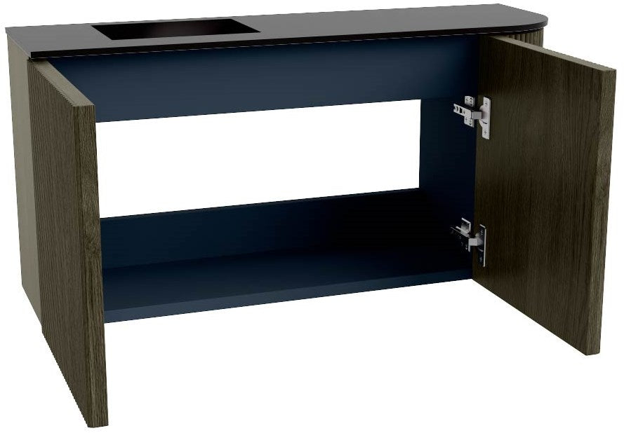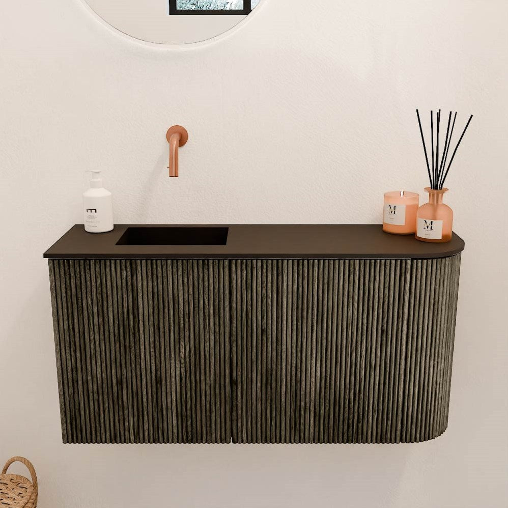 JOYA 81,6cm toiletmeubel ronding rechts kleur Shadow. Wastafel FAYE positie Links Zonder kraangat kleur Urban.
