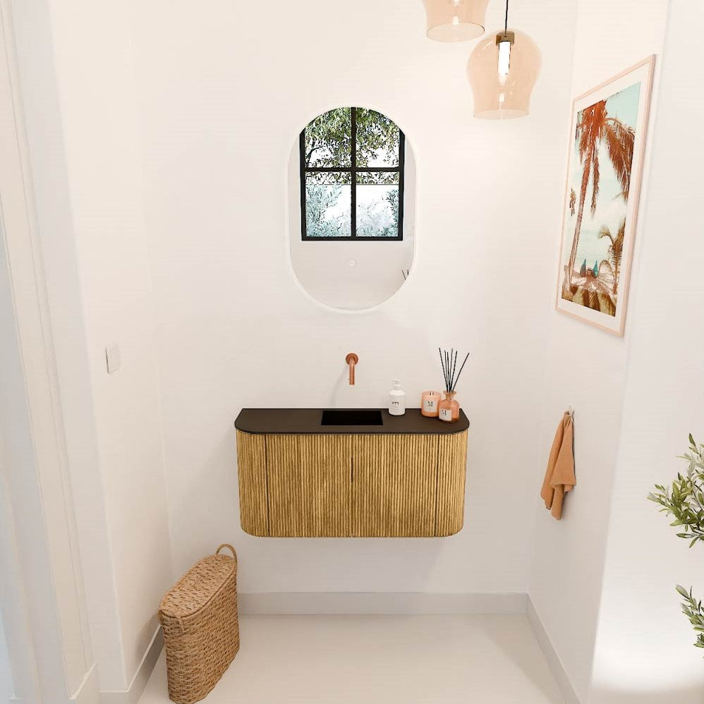JOYA 83,2cm toiletmeubel ronding links + rechts kleur Oak. Wastafel FAYE positie Midden Zonder kraangat kleur Urban.