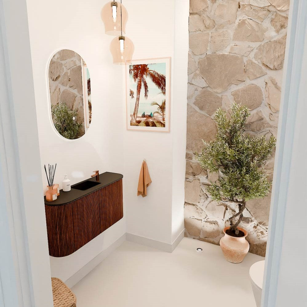 JOYA 83,2cm toiletmeubel ronding links + rechts kleur Ruby. Wastafel FAYE positie Midden 1 kraangat kleur Urban.