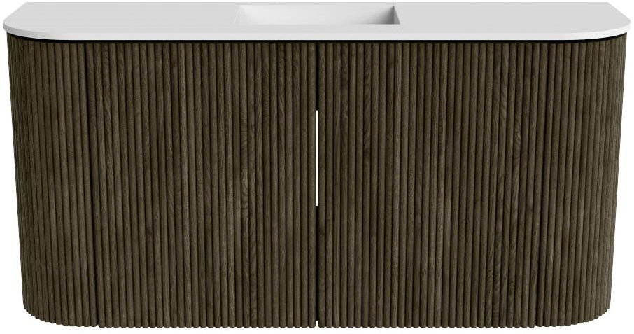 JOYA 83,2cm toiletmeubel ronding links + rechts kleur Shadow. Wastafel FAYE positie Midden 1 kraangat kleur Talc.