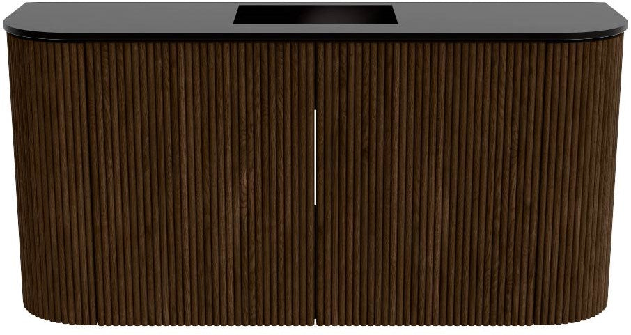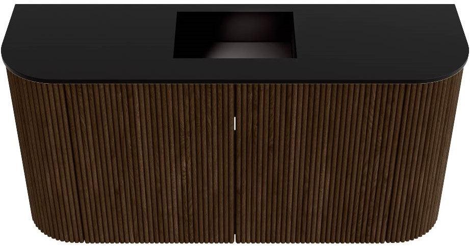 JOYA 83,2cm toiletmeubel ronding links + rechts kleur Walnut. Wastafel FAYE positie Midden Zonder kraangat kleur Urban.
