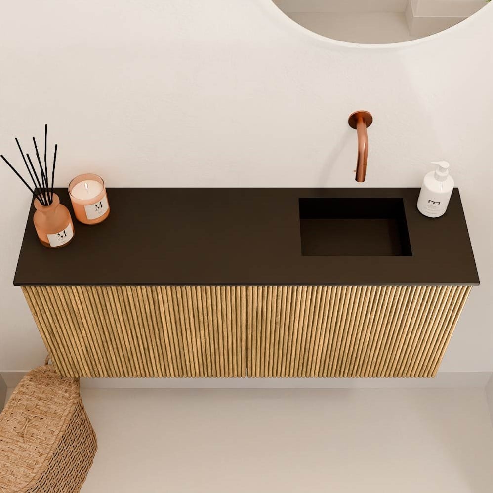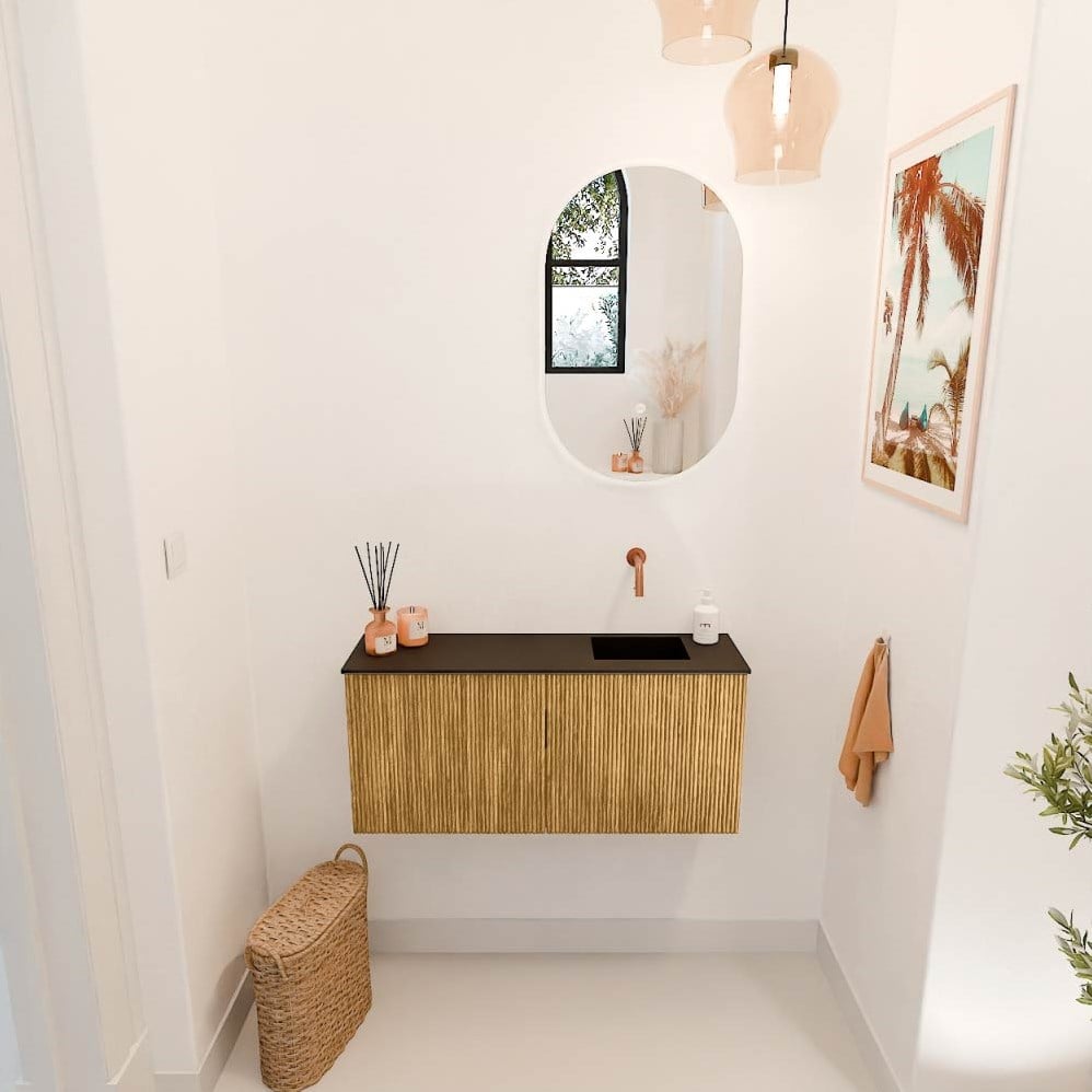 JOYA 90cm toiletmeubel kleur Oak. Wastafel FAYE positie Rechts Zonder kraangat kleur Urban.