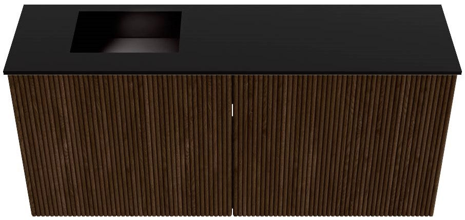 JOYA 90cm toiletmeubel kleur Walnut. Wastafel FAYE positie Links Zonder kraangat kleur Urban.
