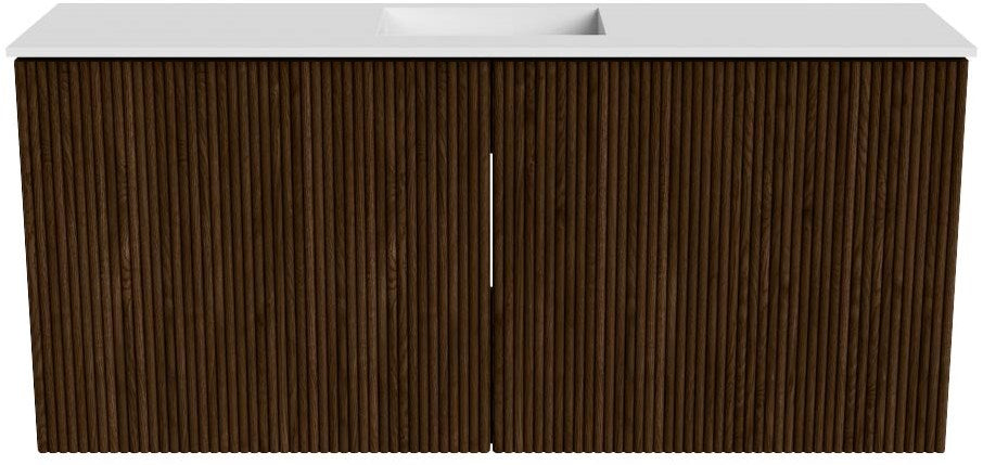 JOYA 90cm toiletmeubel kleur Walnut. Wastafel FAYE positie Midden 1 kraangat kleur Talc.