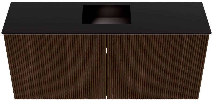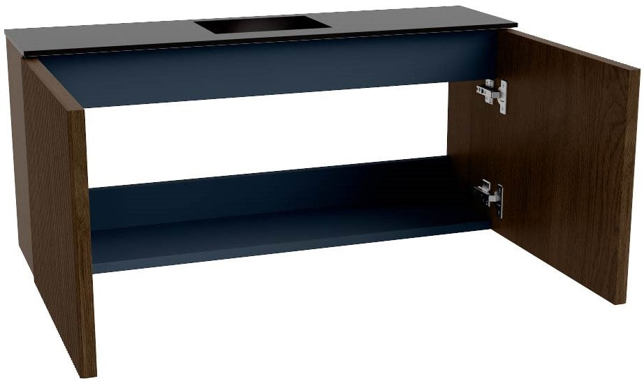 JOYA 90cm toiletmeubel kleur Walnut. Wastafel FAYE positie Midden 1 kraangat kleur Urban.
