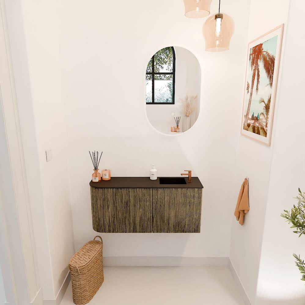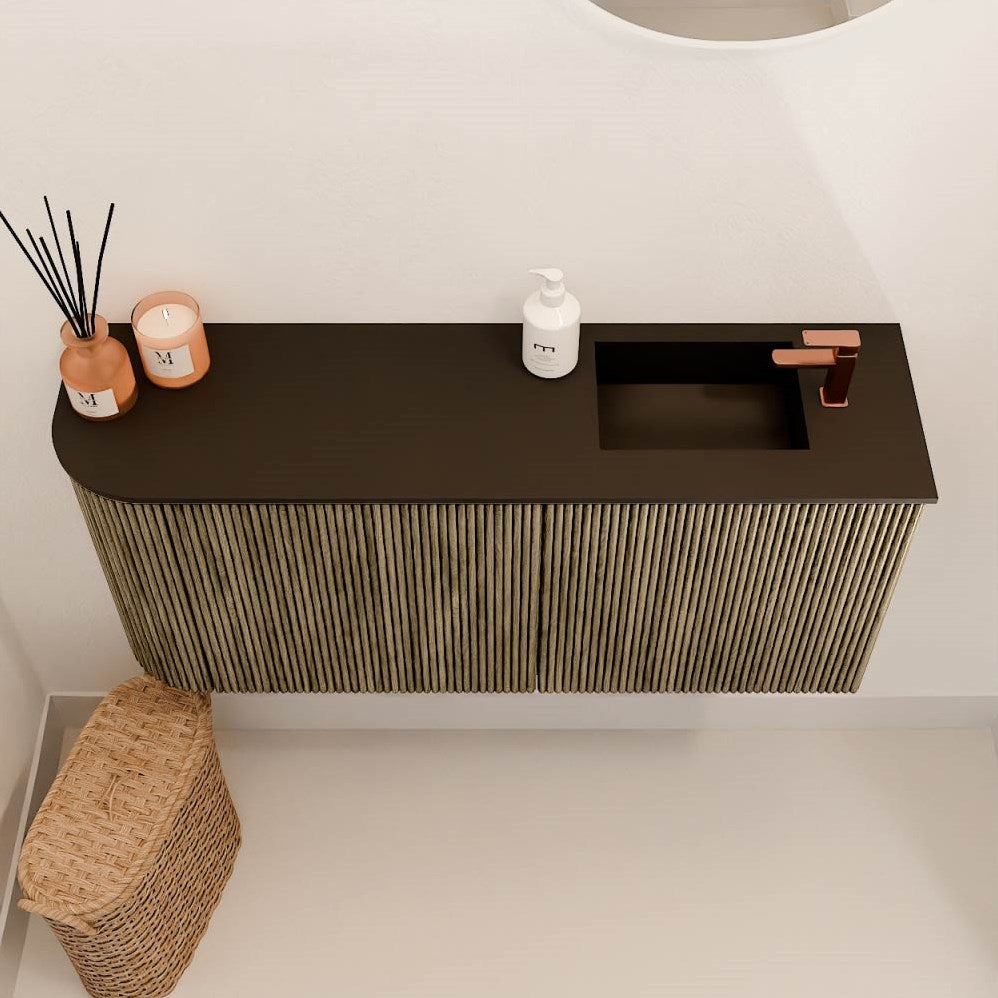 JOYA 91,6cm toiletmeubel ronding links kleur Dusk. Wastafel FAYE positie Rechts 1 kraangat kleur Urban.