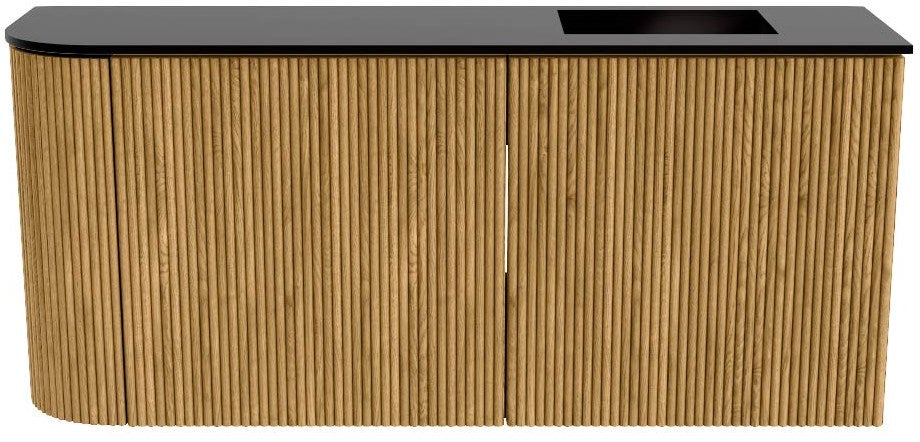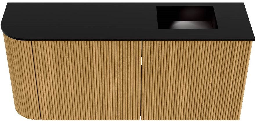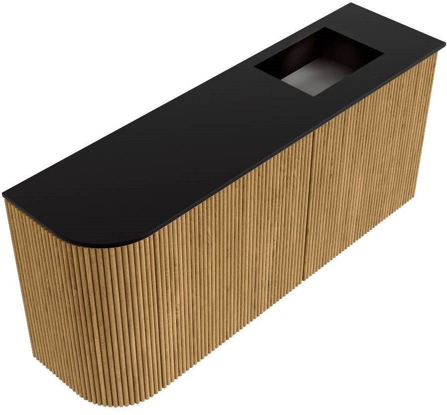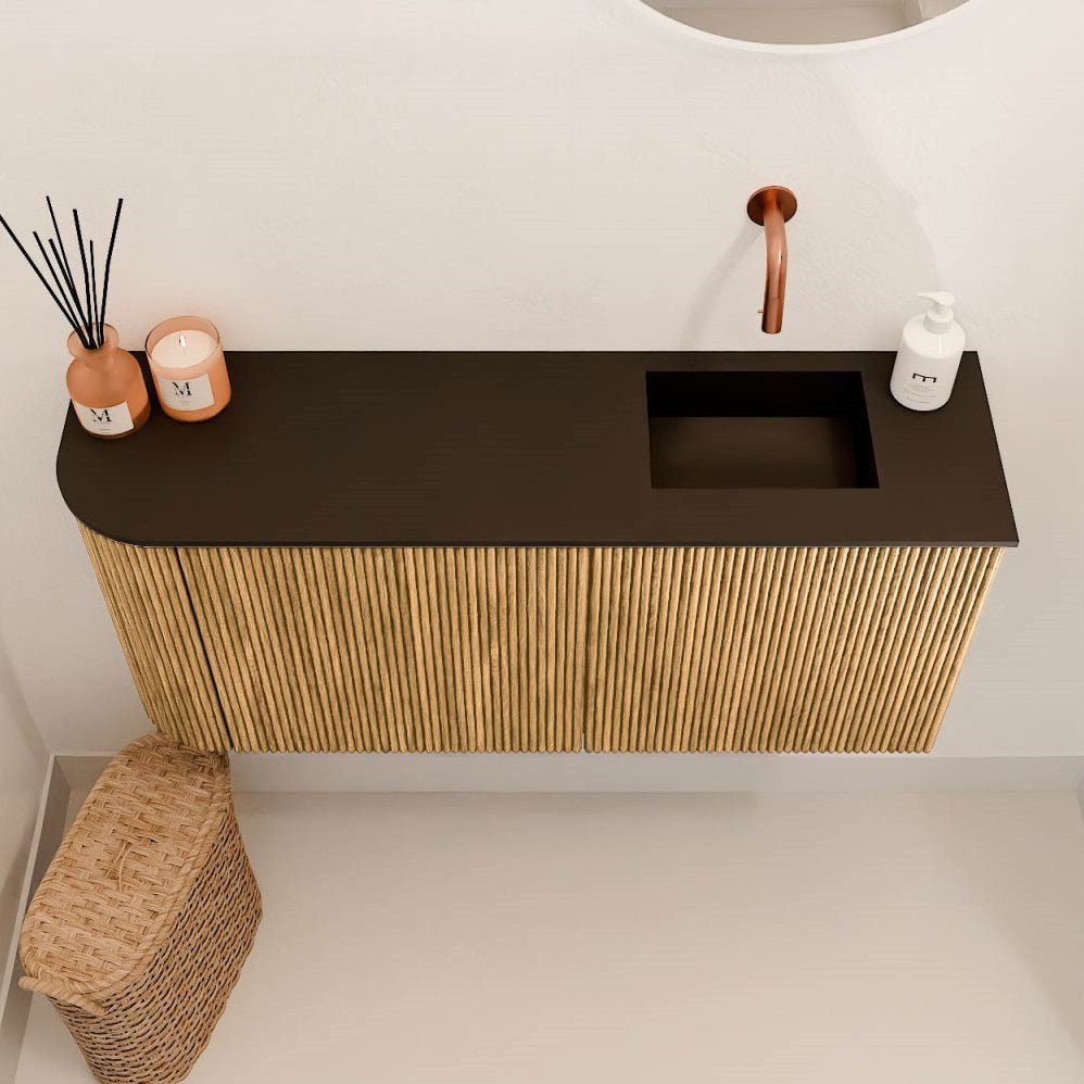 JOYA 91,6cm toiletmeubel ronding links kleur Oak. Wastafel FAYE positie Rechts Zonder kraangat kleur Urban.