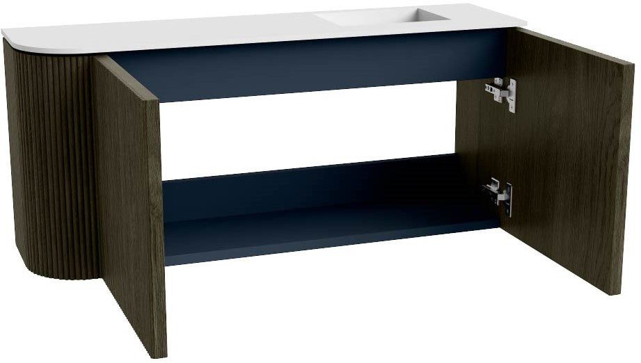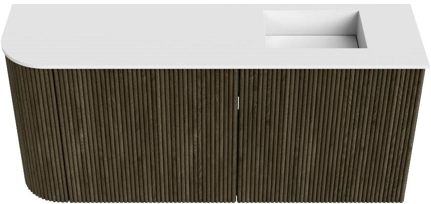 JOYA 91,6cm toiletmeubel ronding links kleur Shadow. Wastafel FAYE positie Rechts 1 kraangat kleur Talc.
