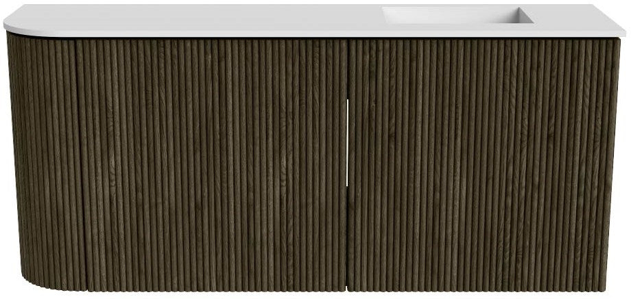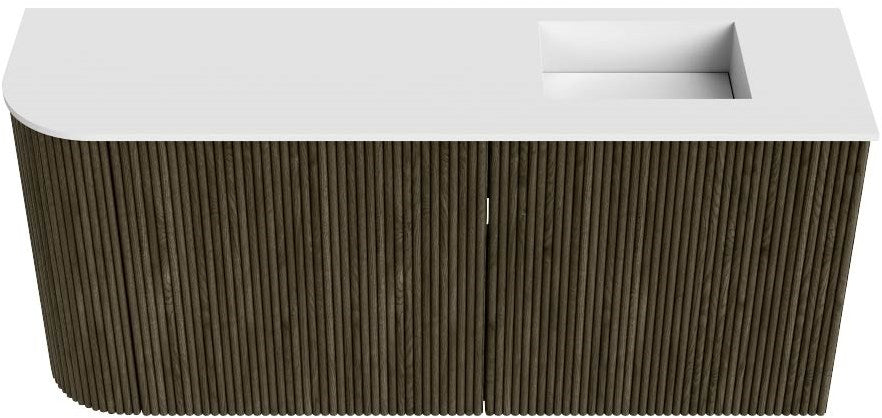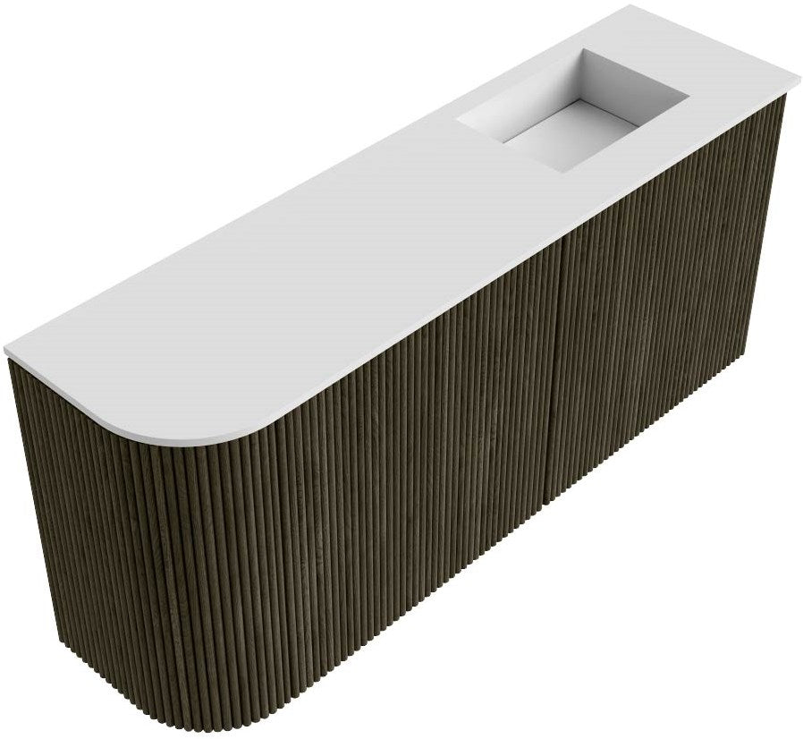 JOYA 91,6cm toiletmeubel ronding links kleur Shadow. Wastafel FAYE positie Rechts Zonder kraangat kleur Talc.
