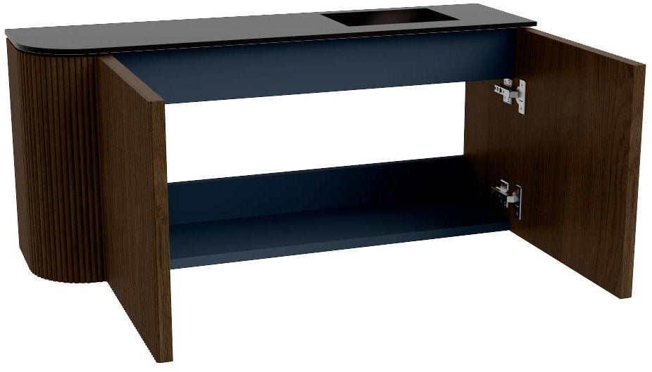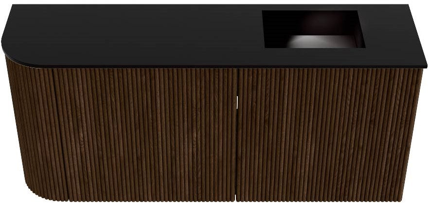 JOYA 91,6cm toiletmeubel ronding links kleur Walnut. Wastafel FAYE positie Rechts 1 kraangat kleur Urban.