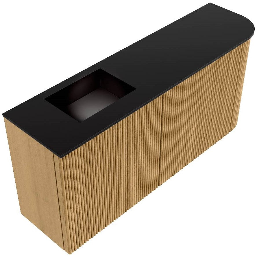 JOYA 91,6cm toiletmeubel ronding rechts kleur Oak. Wastafel FAYE positie Links Zonder kraangat kleur Urban.