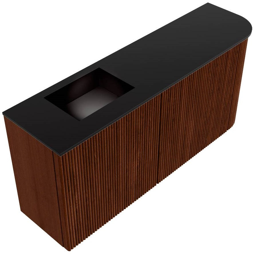 JOYA 91,6cm toiletmeubel ronding rechts kleur Ruby. Wastafel FAYE positie Links Zonder kraangat kleur Urban.
