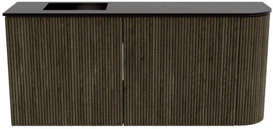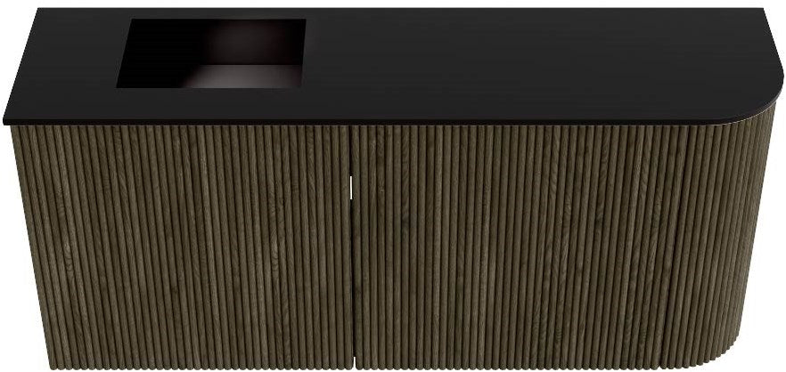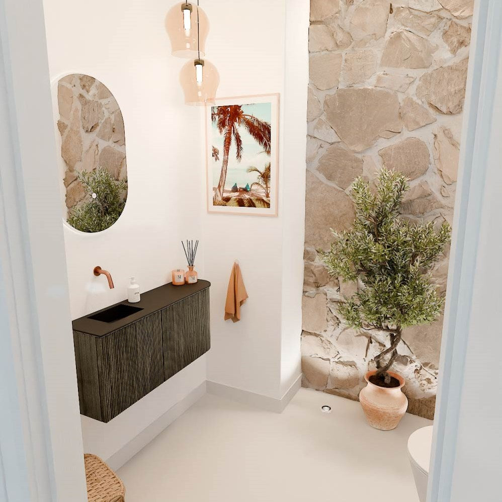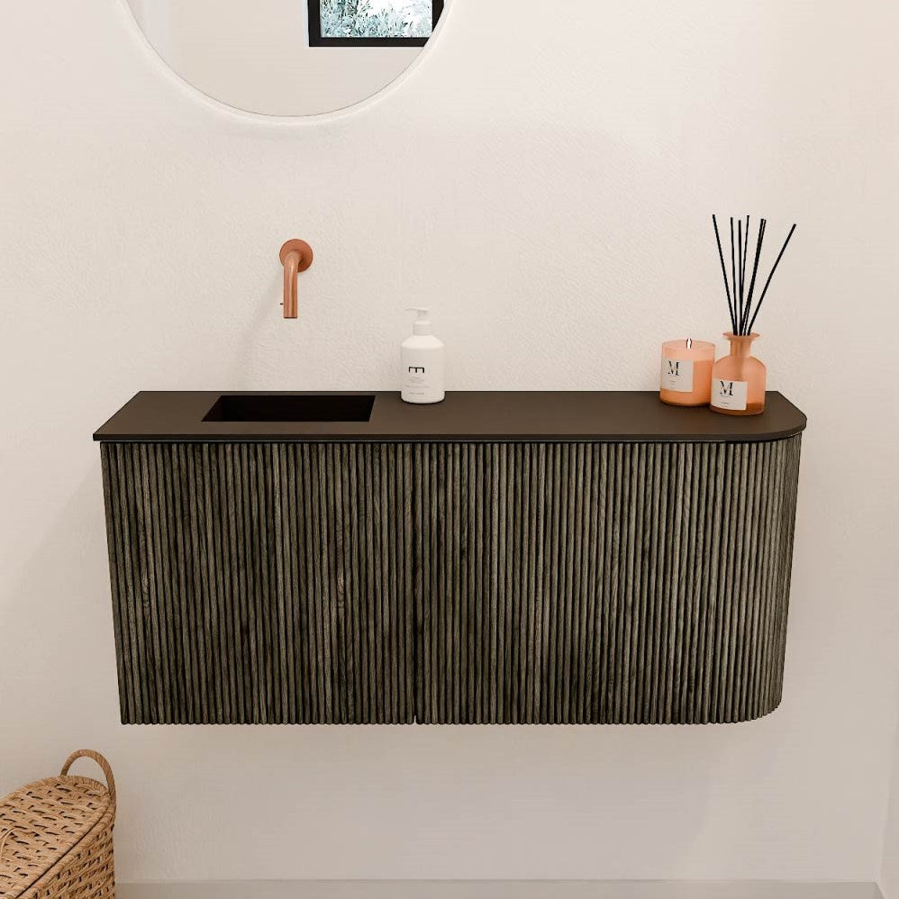 JOYA 91,6cm toiletmeubel ronding rechts kleur Shadow. Wastafel FAYE positie Links Zonder kraangat kleur Urban.