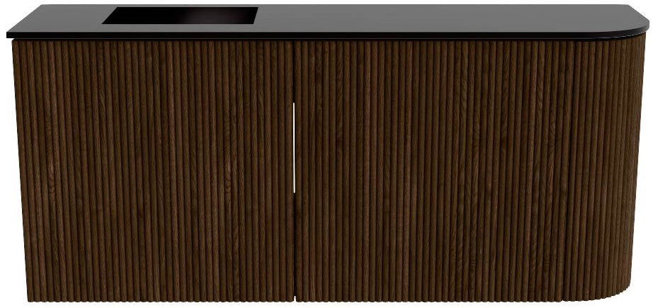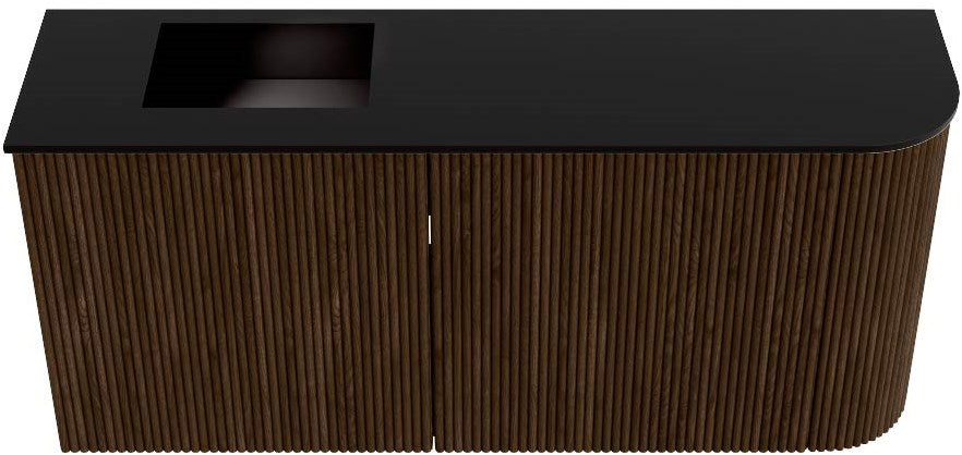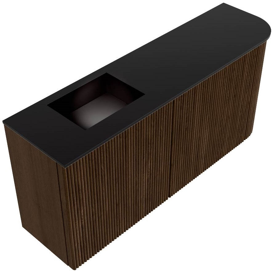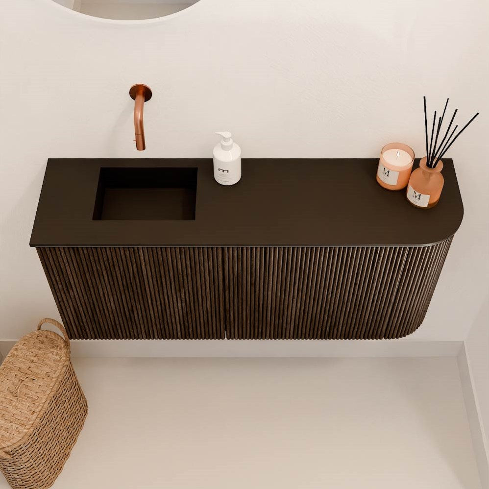 JOYA 91,6cm toiletmeubel ronding rechts kleur Walnut. Wastafel FAYE positie Links Zonder kraangat kleur Urban.