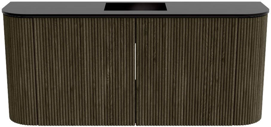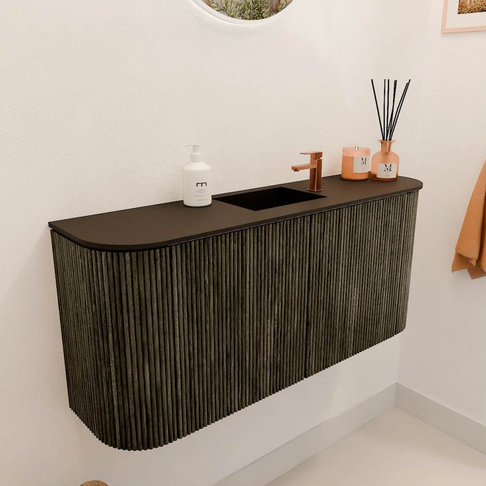 JOYA 93,2cm toiletmeubel ronding links + rechts kleur Shadow. Wastafel FAYE positie Midden 1 kraangat kleur Urban.
