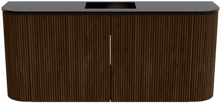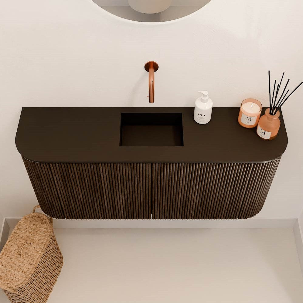 JOYA 93,2cm toiletmeubel ronding links + rechts kleur Walnut. Wastafel FAYE positie Midden Zonder kraangat kleur Urban.