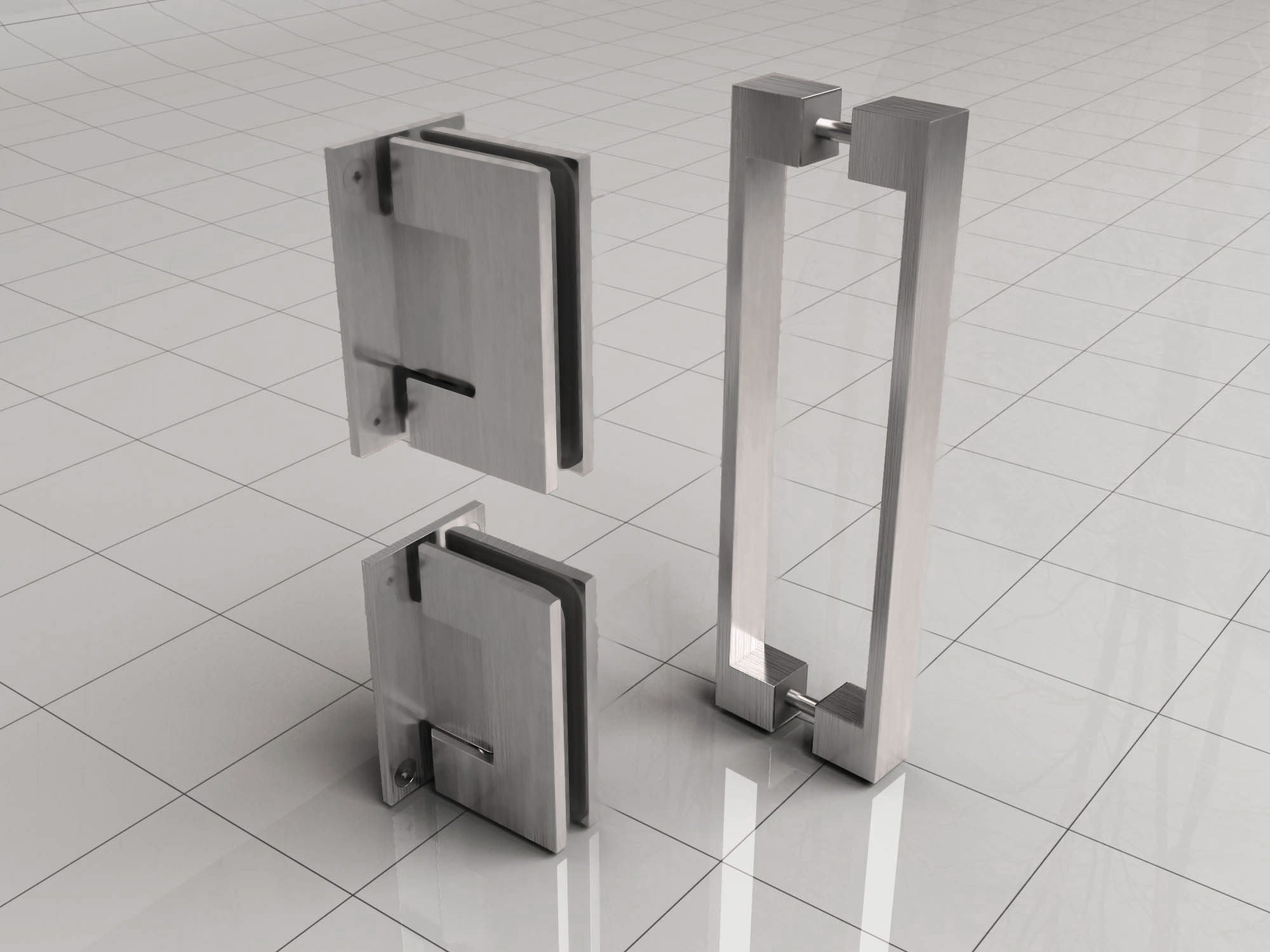 Scharnierset + hendel geborsteld staal tbv profielloze nisdeur
