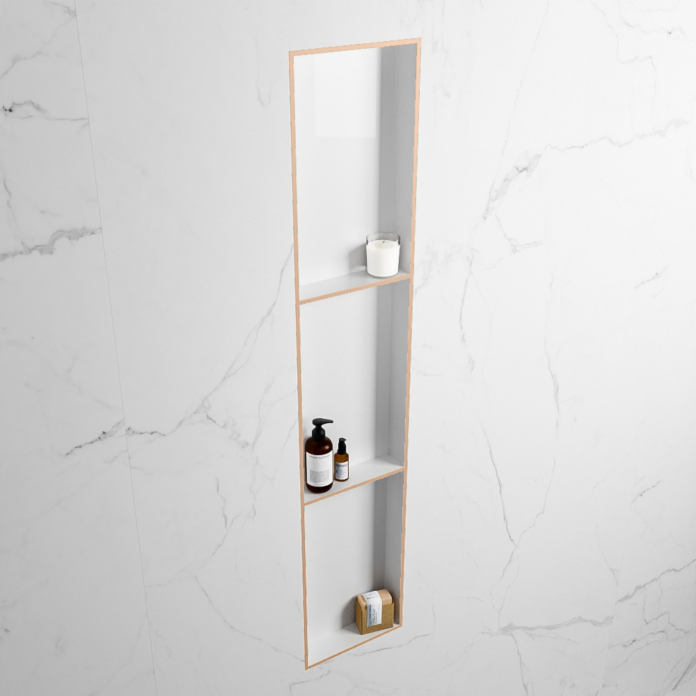 De Solid Surface EASY inbouw nis is een aanwinst voor iedere badkamer of toilet en met alle verschillende maten en kleuren ook een mooie en effici‘nte accessoire. De Mondiaz nis neemt geen extra ruimte in omdat de nis ingebouwd kan worden maar je kan hem ook eenvoudig rechtstreeks op de muur bevestigen. Zo staan al je douche of badproducten binnen handbereik. De Mondiaz Solid Surface (inbouw) nis mag daarom niet ontbreken in de badkamer of toiletruimte waar de ruimte vaak beperkt is. De nis is daarbij een mooie functionele ruimtebesparing en het ideale product om jouw mooie spulletjes in uit te stallen.
