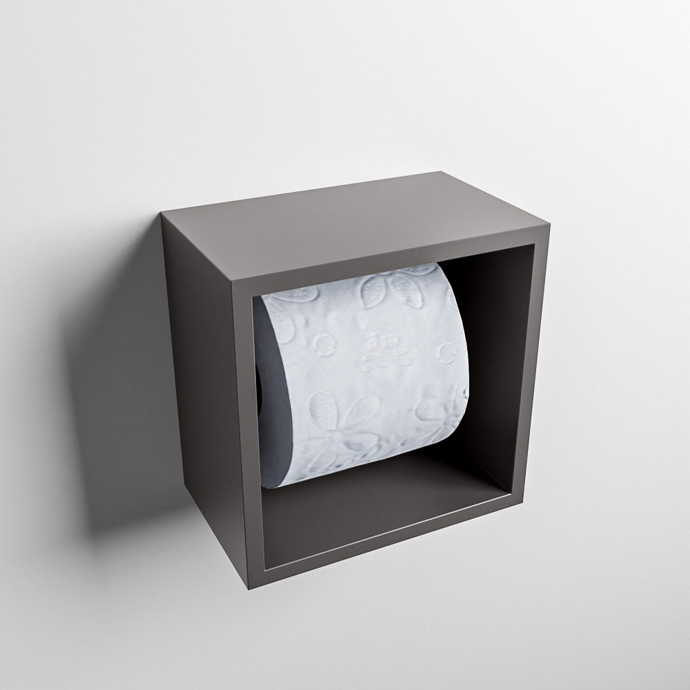 MONDIAZ EASY Toiletrolhouder CUBE 160 solid surface 16x16cm kleur Dark grey. Geschikt voor op en inbouw.