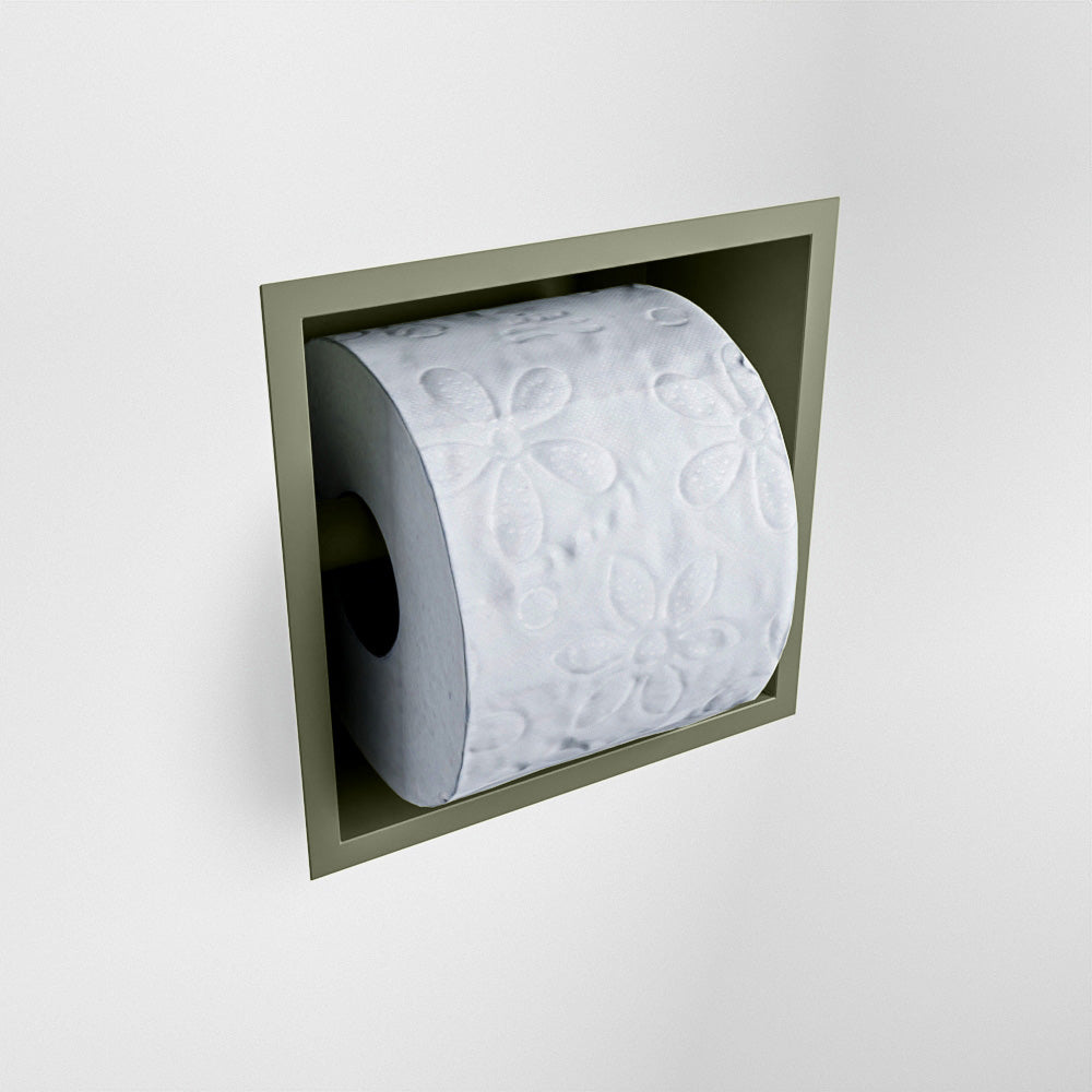 MONDIAZ EASY Toiletrolhouder CUBE 160 solid surface 16x8,6cm kleur Army. Geschikt voor op en inbouw.
