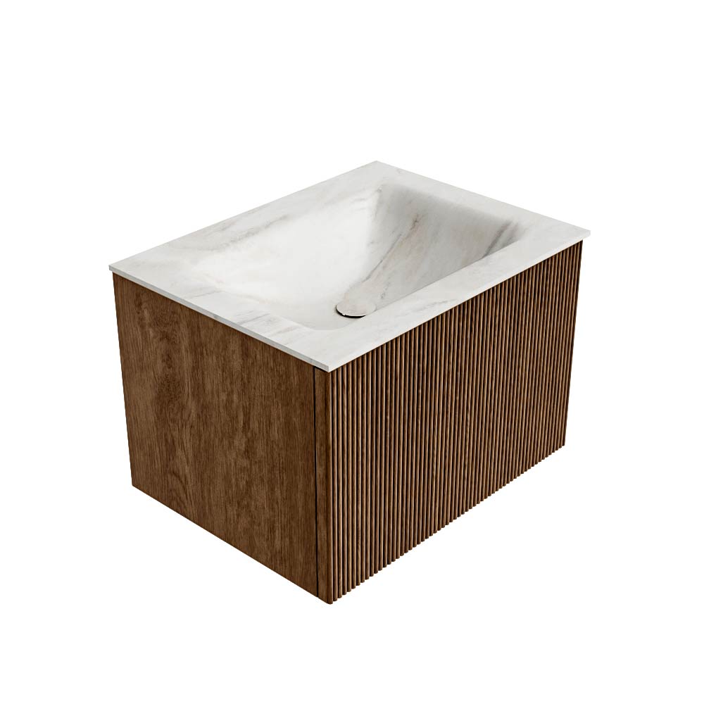 MONDIAZ KURVE-DLUX 60cm badmeubel kleur Walnut met 1 lade en 0 deuren. Wastafel CLOUD Midden 1 kraangat Ostra.