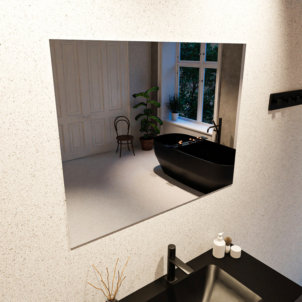 De LETT spiegel van Mondiaz is een moderne, strakke spiegel zonder omlijsting. Beschikbaar in verschillende afmetingen, met een rechthoekige vorm of een vierkante spiegel van 70x70cm.