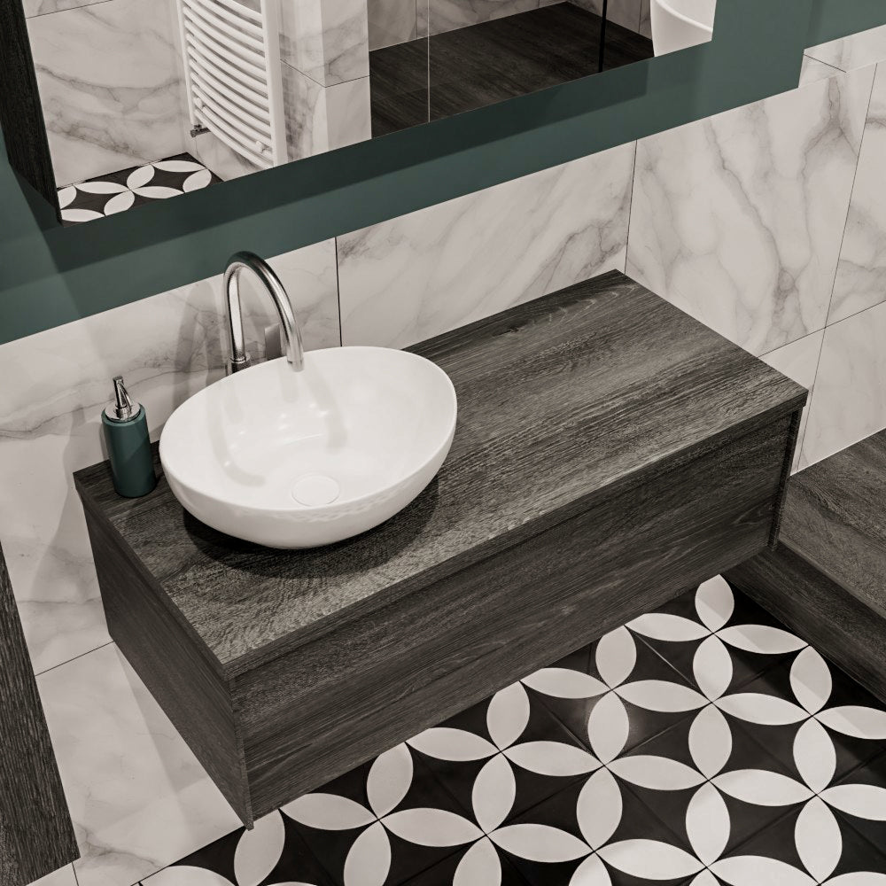 De LUSH meubelset is verkrijgbaar in 4 prachtige melamine kleuren, die een warme en natuurlijke uitstraling toevoegen aan je badkamer. In de LUSH serie heb je de keuze tussen 1 of 2 lades en kun je kiezen tussen een wastafel of waskom. Daarnaast is het mogelijk om te kiezen voor wel of geen kraangat en de positie van de wastafel/waskom. Deze serie biedt daarmee veelzijdige opties om het badmeubel aan te passen aan jouw specifieke behoeften en smaak.