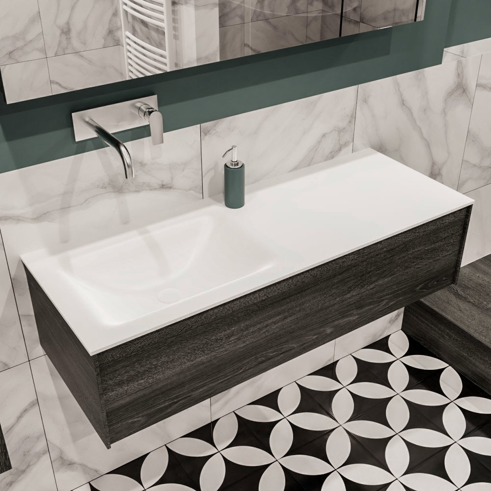 MONDIAZ LUSH 120 badmeubel antracite 1 lade wastafel CLOUD links geen kraangat