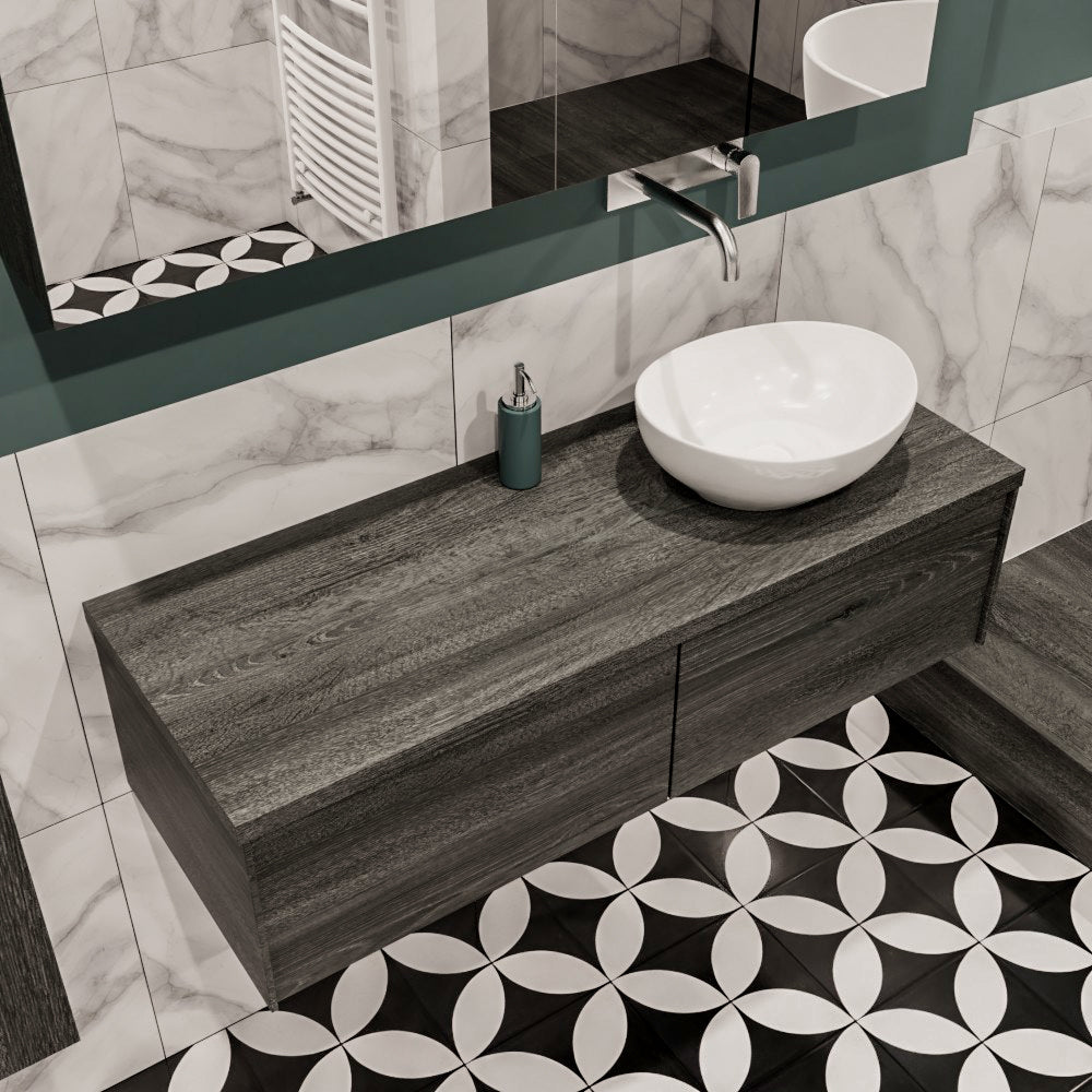 De LUSH meubelset is verkrijgbaar in 4 prachtige melamine kleuren, die een warme en natuurlijke uitstraling toevoegen aan je badkamer. In de LUSH serie heb je de keuze tussen 1 of 2 lades en kun je kiezen tussen een wastafel of waskom. Daarnaast is het mogelijk om te kiezen voor wel of geen kraangat en de positie van de wastafel/waskom. Deze serie biedt daarmee veelzijdige opties om het badmeubel aan te passen aan jouw specifieke behoeften en smaak.