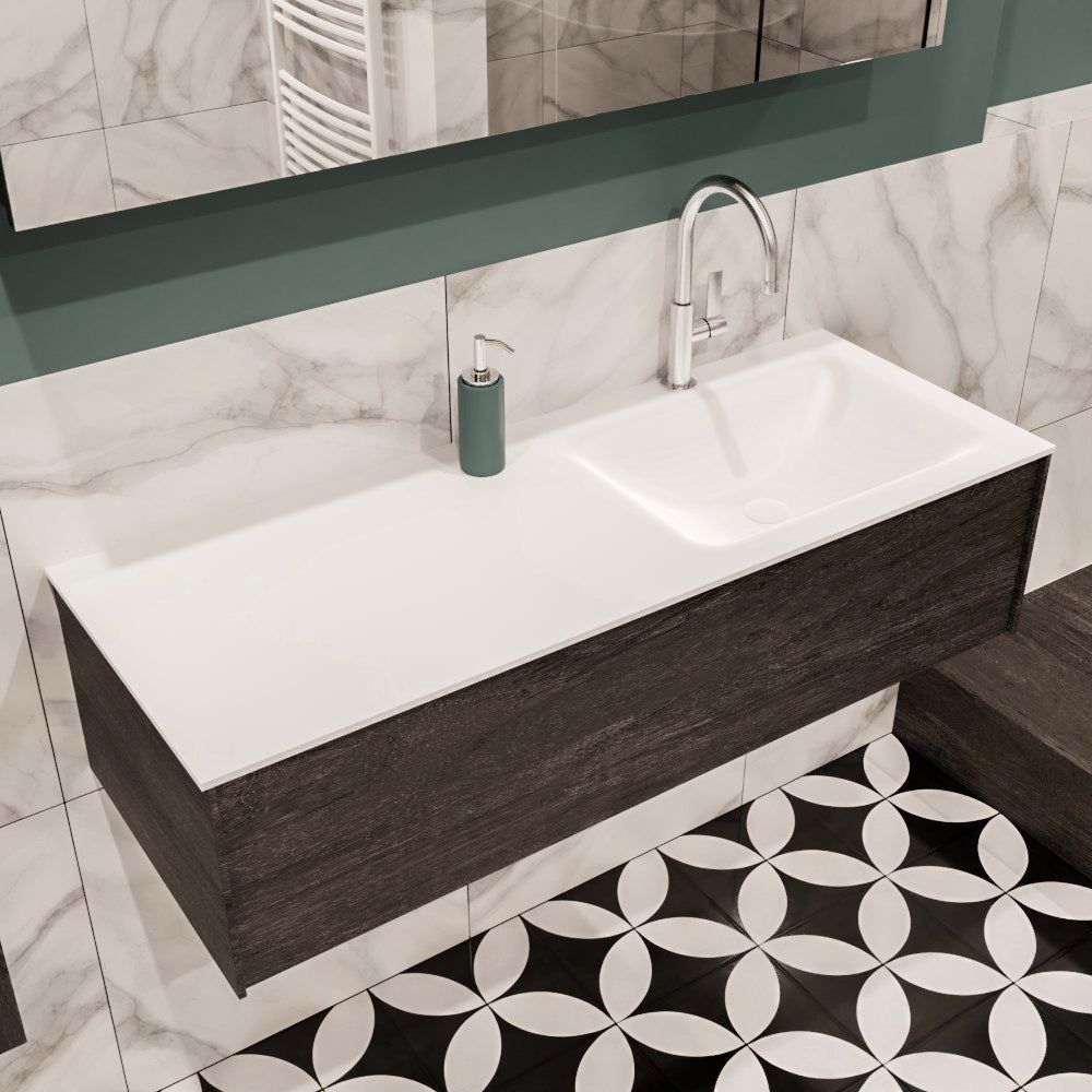 MONDIAZ LUSH 120 badmeubel dark brown 1 lade wastafel CLOUD rechts 1 kraangat