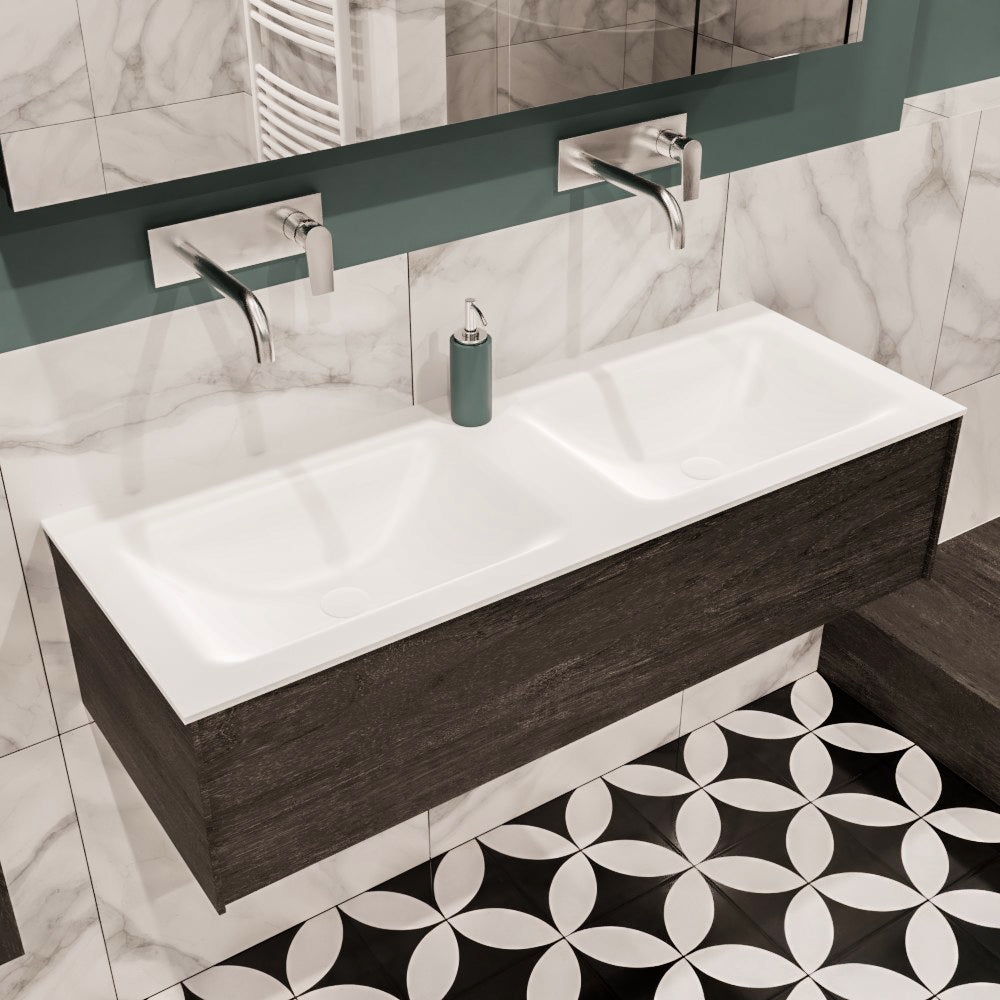 De LUSH meubelset is verkrijgbaar in 4 prachtige melamine kleuren, die een warme en natuurlijke uitstraling toevoegen aan je badkamer. In de LUSH serie heb je de keuze tussen 1 of 2 lades en kun je kiezen tussen een wastafel of waskom. Daarnaast is het mogelijk om te kiezen voor wel of geen kraangat en de positie van de wastafel/waskom. Deze serie biedt daarmee veelzijdige opties om het badmeubel aan te passen aan jouw specifieke behoeften en smaak.