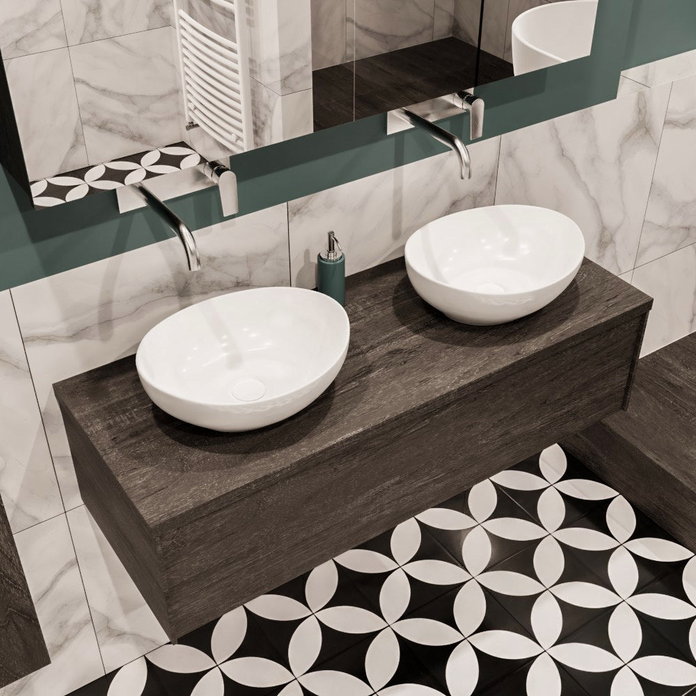 De LUSH meubelset is verkrijgbaar in 4 prachtige melamine kleuren, die een warme en natuurlijke uitstraling toevoegen aan je badkamer. In de LUSH serie heb je de keuze tussen 1 of 2 lades en kun je kiezen tussen een wastafel of waskom. Daarnaast is het mogelijk om te kiezen voor wel of geen kraangat en de positie van de wastafel/waskom. Deze serie biedt daarmee veelzijdige opties om het badmeubel aan te passen aan jouw specifieke behoeften en smaak.