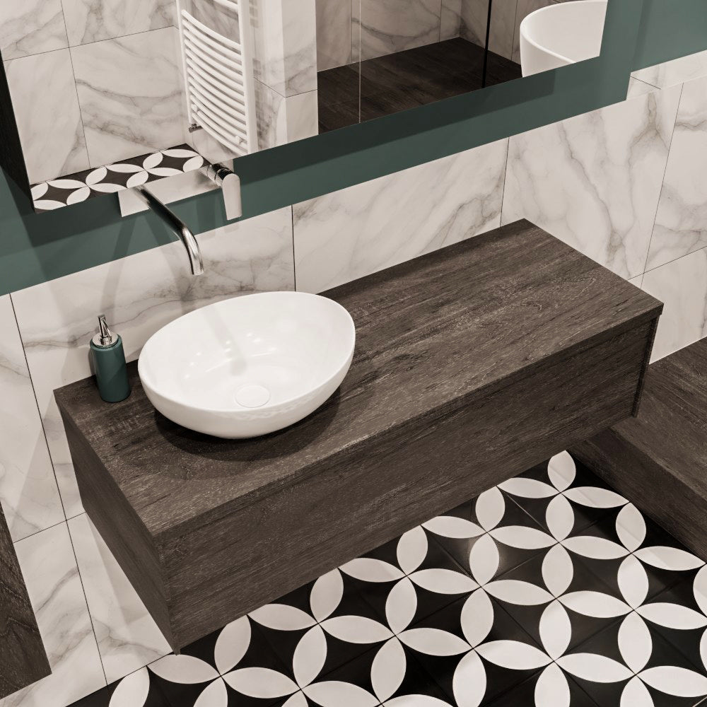 De LUSH meubelset is verkrijgbaar in 4 prachtige melamine kleuren, die een warme en natuurlijke uitstraling toevoegen aan je badkamer. In de LUSH serie heb je de keuze tussen 1 of 2 lades en kun je kiezen tussen een wastafel of waskom. Daarnaast is het mogelijk om te kiezen voor wel of geen kraangat en de positie van de wastafel/waskom. Deze serie biedt daarmee veelzijdige opties om het badmeubel aan te passen aan jouw specifieke behoeften en smaak.
