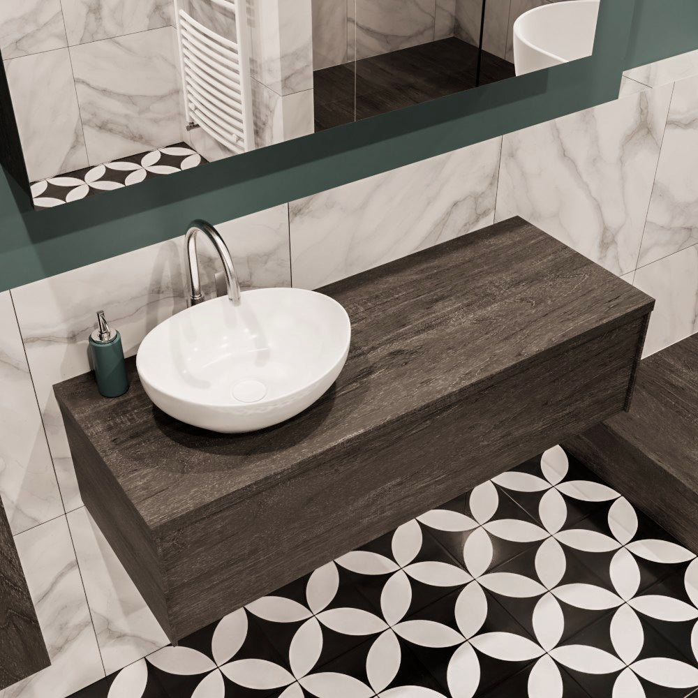 De LUSH meubelset is verkrijgbaar in 4 prachtige melamine kleuren, die een warme en natuurlijke uitstraling toevoegen aan je badkamer. In de LUSH serie heb je de keuze tussen 1 of 2 lades en kun je kiezen tussen een wastafel of waskom. Daarnaast is het mogelijk om te kiezen voor wel of geen kraangat en de positie van de wastafel/waskom. Deze serie biedt daarmee veelzijdige opties om het badmeubel aan te passen aan jouw specifieke behoeften en smaak.