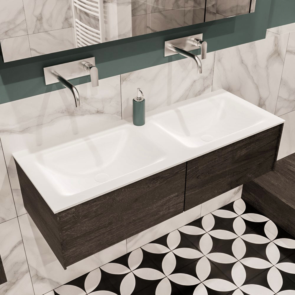 MONDIAZ LUSH 120 badmeubel dark brown 2 lades wastafel dubbel geen kraangat