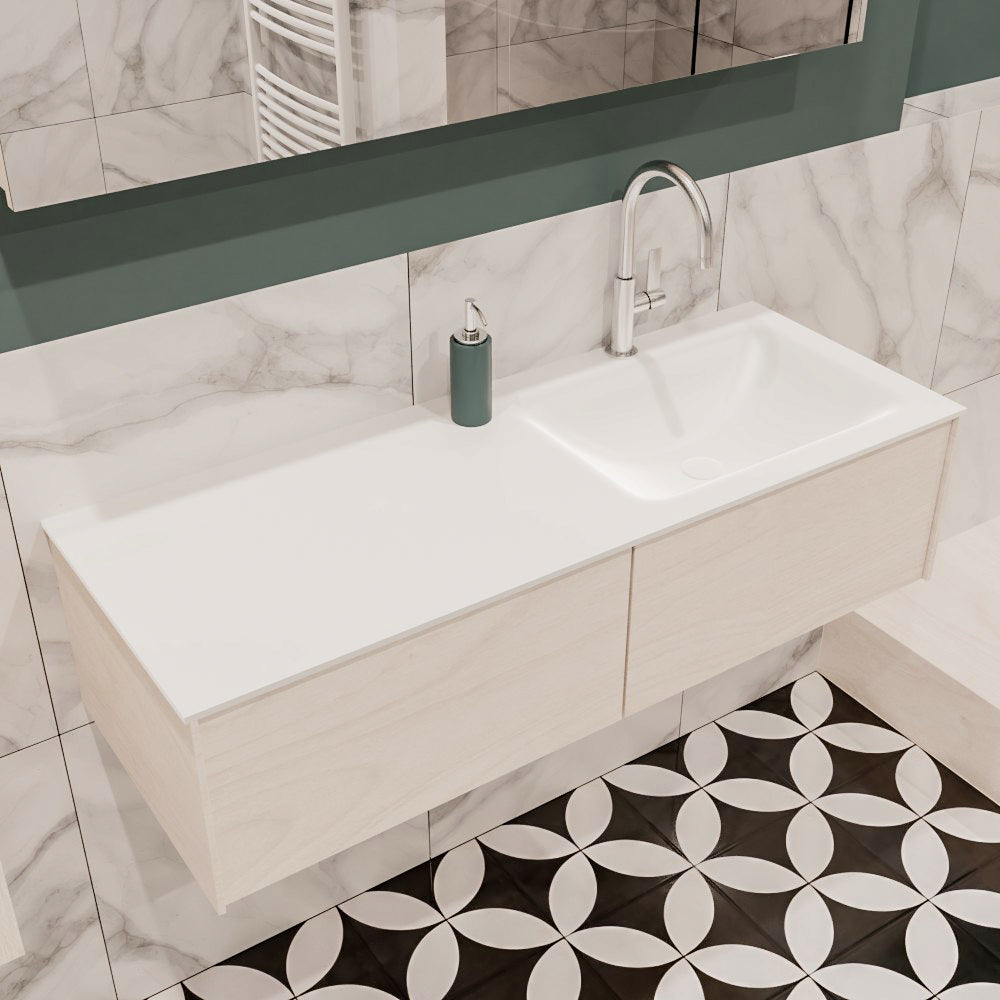 MONDIAZ LUSH 120 badmeubel underlayment 2 lades wastafel rechts 1 kraangat