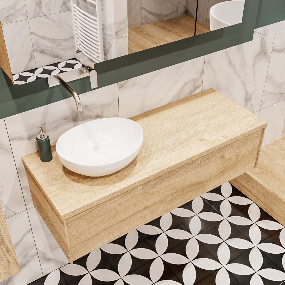 MONDIAZ LUSH 120 badmeubel washed oak 1 lades BARCO links geen kraangat