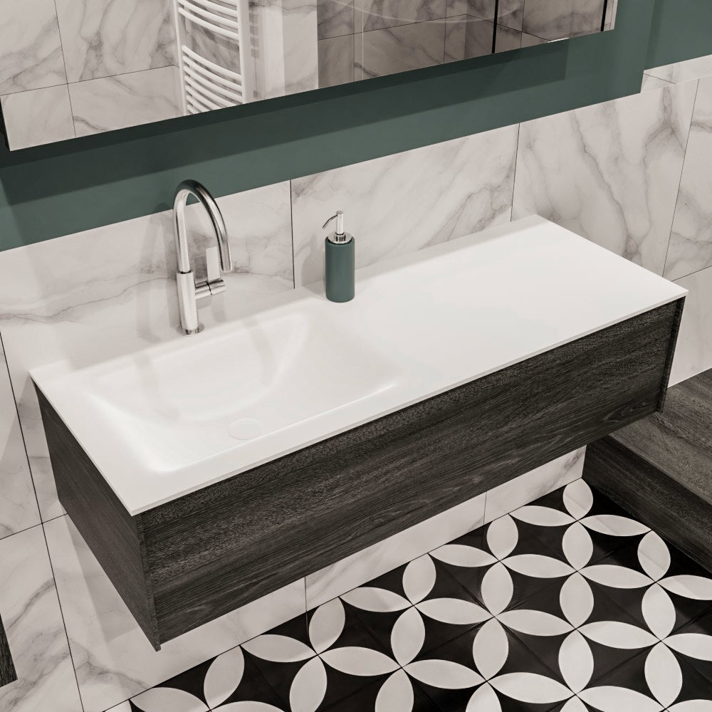 MONDIAZ LUSH 120cm badmeubel antracite 1 lade wastafel CLOUD links 1 kraangat