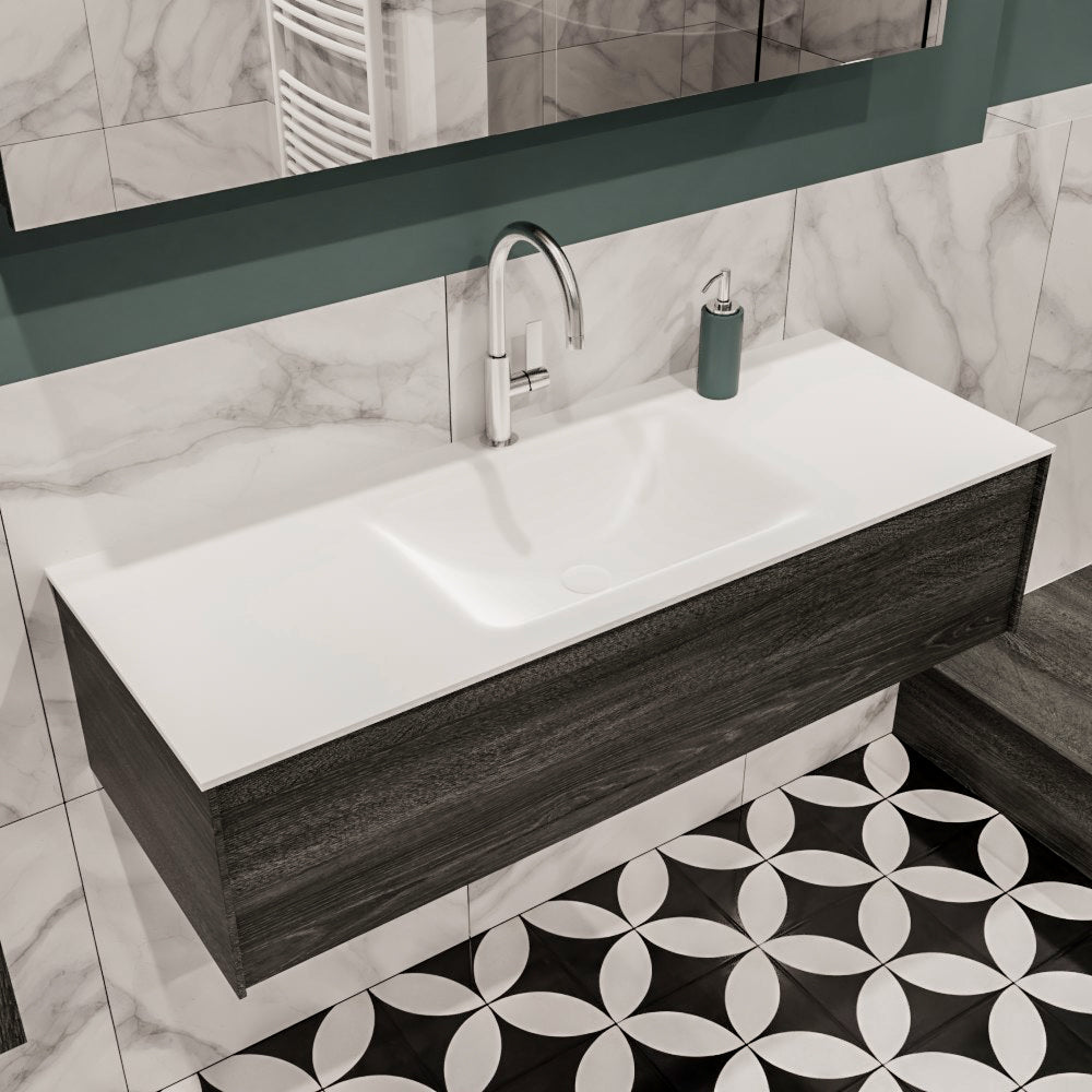 De LUSH meubelset is verkrijgbaar in 4 prachtige melamine kleuren, die een warme en natuurlijke uitstraling toevoegen aan je badkamer. In de LUSH serie heb je de keuze tussen 1 of 2 lades en kun je kiezen tussen een wastafel of waskom. Daarnaast is het mogelijk om te kiezen voor wel of geen kraangat en de positie van de wastafel/waskom. Deze serie biedt daarmee veelzijdige opties om het badmeubel aan te passen aan jouw specifieke behoeften en smaak.