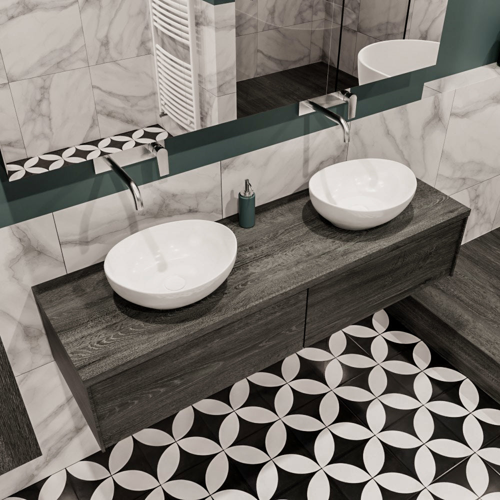 De LUSH meubelset is verkrijgbaar in 4 prachtige melamine kleuren, die een warme en natuurlijke uitstraling toevoegen aan je badkamer. In de LUSH serie heb je de keuze tussen 1 of 2 lades en kun je kiezen tussen een wastafel of waskom. Daarnaast is het mogelijk om te kiezen voor wel of geen kraangat en de positie van de wastafel/waskom. Deze serie biedt daarmee veelzijdige opties om het badmeubel aan te passen aan jouw specifieke behoeften en smaak.