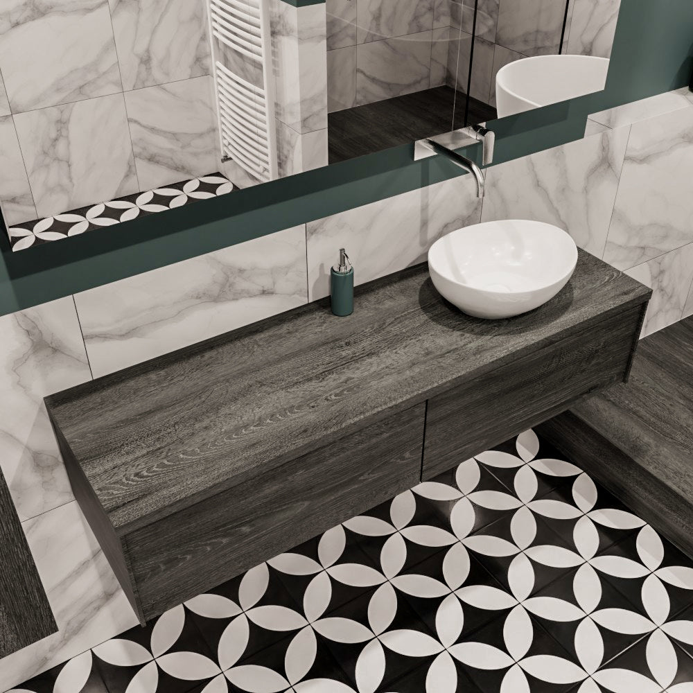 De LUSH meubelset is verkrijgbaar in 4 prachtige melamine kleuren, die een warme en natuurlijke uitstraling toevoegen aan je badkamer. In de LUSH serie heb je de keuze tussen 1 of 2 lades en kun je kiezen tussen een wastafel of waskom. Daarnaast is het mogelijk om te kiezen voor wel of geen kraangat en de positie van de wastafel/waskom. Deze serie biedt daarmee veelzijdige opties om het badmeubel aan te passen aan jouw specifieke behoeften en smaak.
