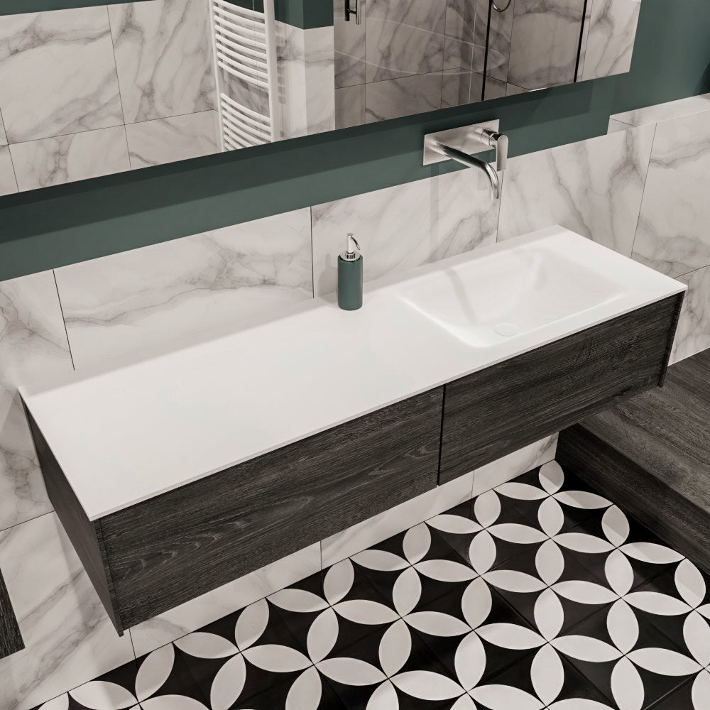De LUSH meubelset is verkrijgbaar in 4 prachtige melamine kleuren, die een warme en natuurlijke uitstraling toevoegen aan je badkamer. In de LUSH serie heb je de keuze tussen 1 of 2 lades en kun je kiezen tussen een wastafel of waskom. Daarnaast is het mogelijk om te kiezen voor wel of geen kraangat en de positie van de wastafel/waskom. Deze serie biedt daarmee veelzijdige opties om het badmeubel aan te passen aan jouw specifieke behoeften en smaak.