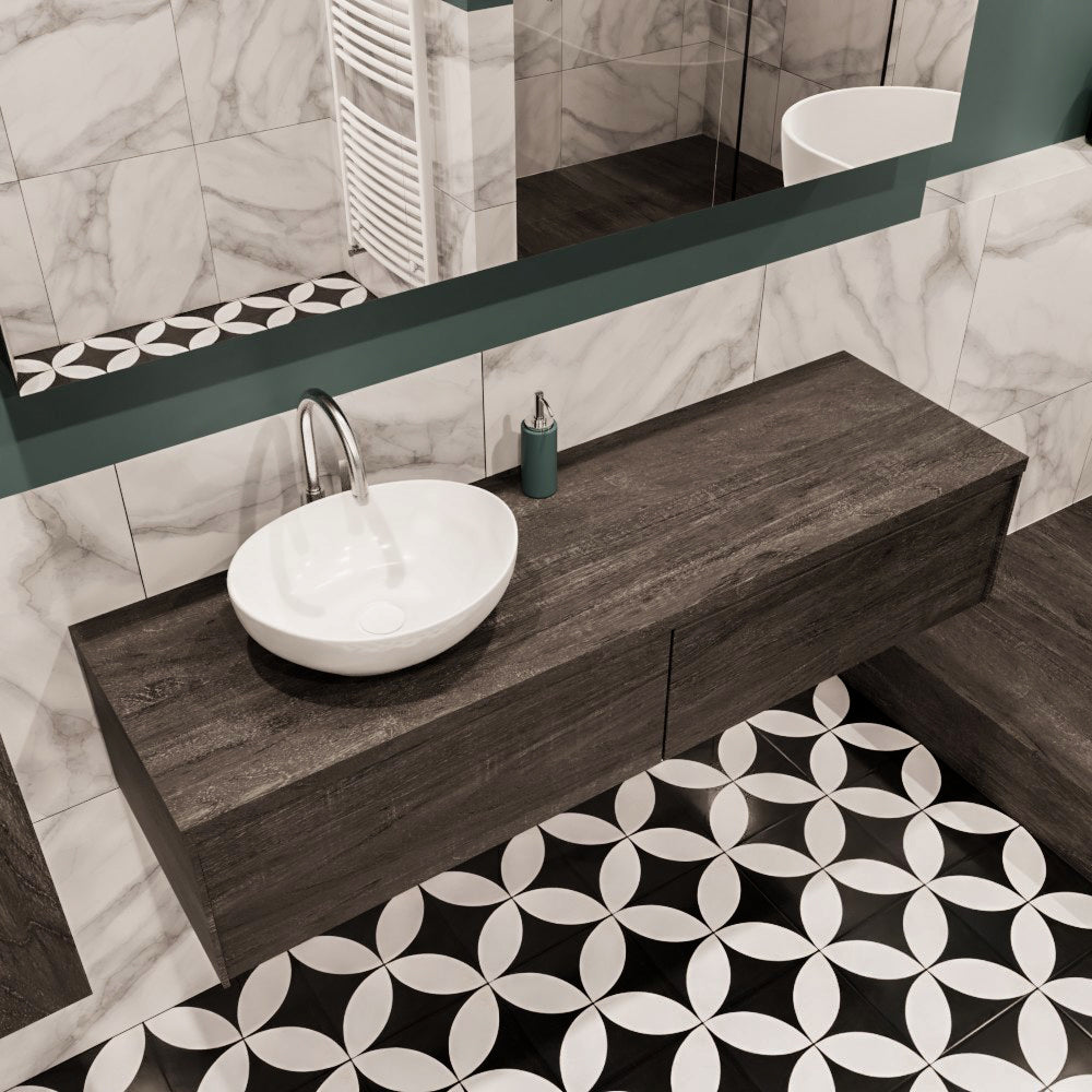 De LUSH meubelset is verkrijgbaar in 4 prachtige melamine kleuren, die een warme en natuurlijke uitstraling toevoegen aan je badkamer. In de LUSH serie heb je de keuze tussen 1 of 2 lades en kun je kiezen tussen een wastafel of waskom. Daarnaast is het mogelijk om te kiezen voor wel of geen kraangat en de positie van de wastafel/waskom. Deze serie biedt daarmee veelzijdige opties om het badmeubel aan te passen aan jouw specifieke behoeften en smaak.