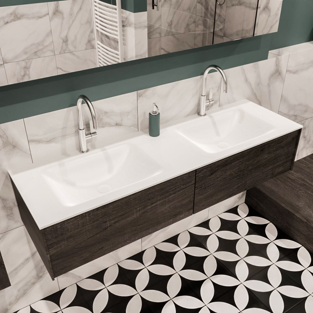 MONDIAZ LUSH 150 badmeubel dark brown 2 lades wastafel dubbel 2 kraangaten