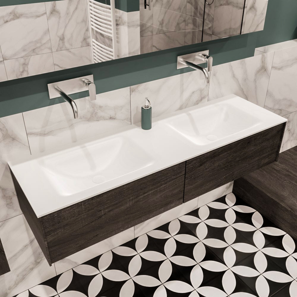 MONDIAZ LUSH 150 badmeubel dark brown 2 lades wastafel dubbel geen kraangat